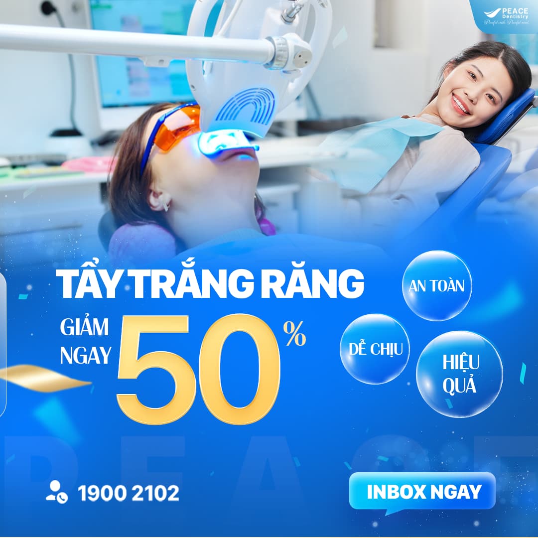 Peace Dentistry cam kết: Nếu hiệu quả trắng sáng thấp sẽ không thu bất kỳ khoản phí nào của khách hàng. Khách hàng sẽ được đo màu răng trước và sau khi tẩy trắng để làm căn cứ đánh giá hiệu quả.