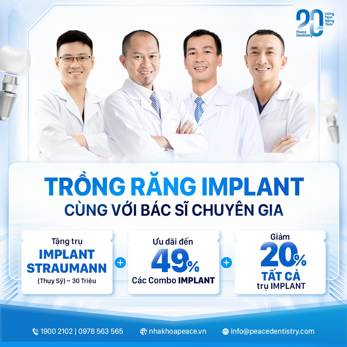 - Là các bác sĩ Implant nhiều kinh nghiệm, tu nghiệp chuyên sâu về Implant và sở hữu các chứng chỉ cấy ghép Implant uy tín.