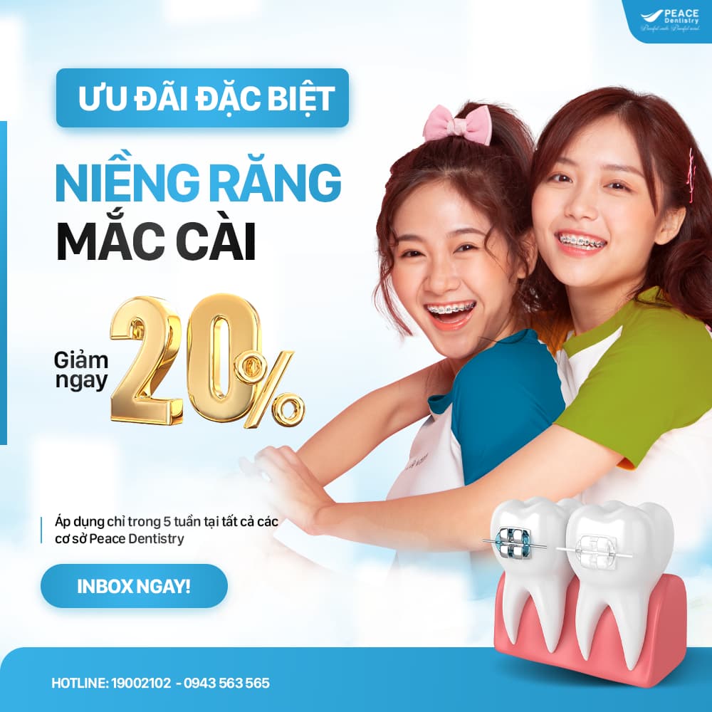 Để đảm bảo sự uy tín cũng như phần nào hỗ trợ về mặt chi phí cho khách hàng, Peace Dentistry áp dụng chính sách thanh toán theo tiến độ điều trị: khách hàng chỉ hoàn thanh thanh toán khi đã hoàn thành điều trị, chi phí sẽ được thanh toán đều theo mỗi lần tái khám, chi phí thanh toán trước 50% khi hoàn thành đeo mắc cài.