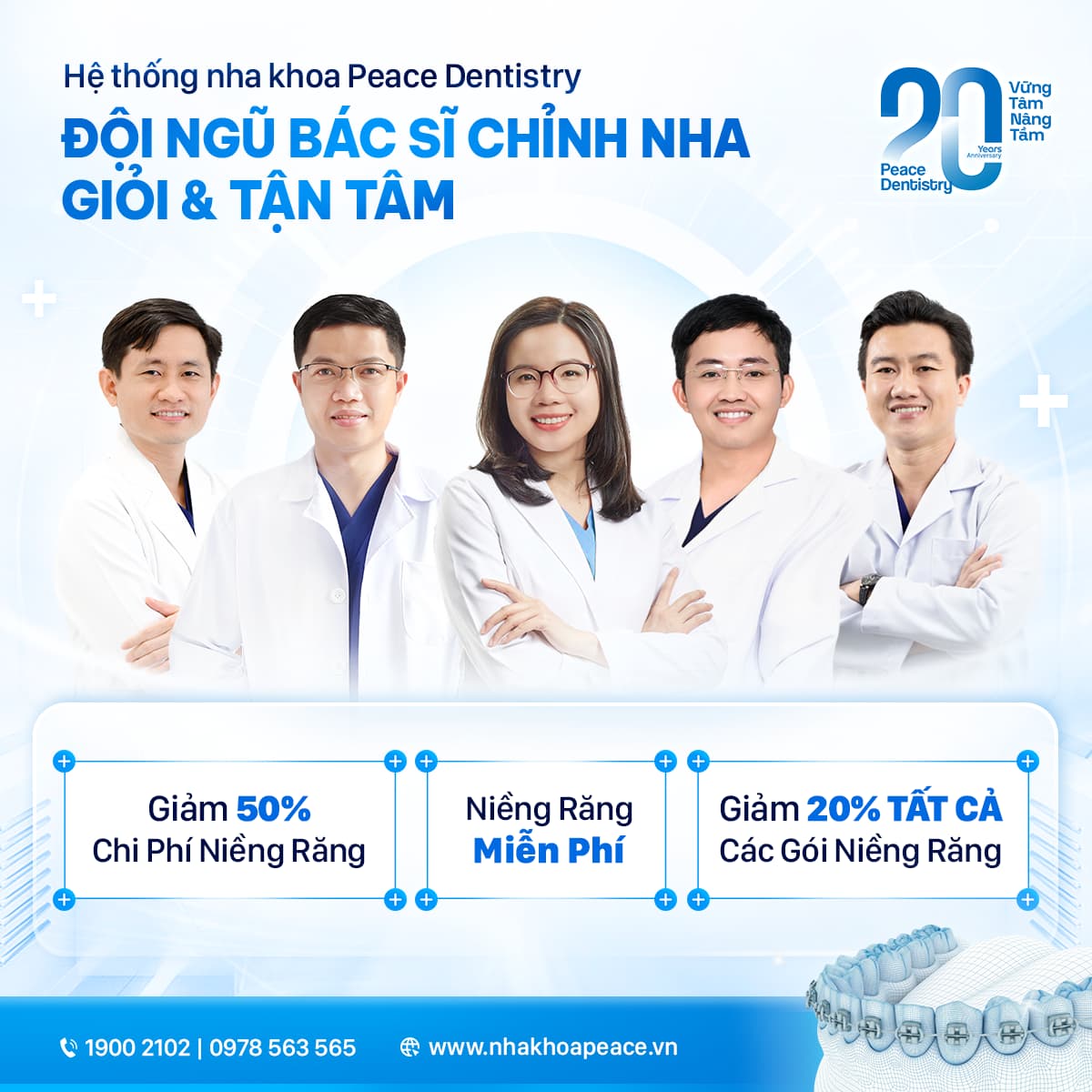 Đội ngũ bác sĩ và chuyên gia chỉnh nha niềng răng tại Peace Dentistry Tp.HCM gồm các bác sĩ giỏi tu nghiệp chuyên sâu về niềng răng từ Mỹ, Australia, Singapore..., cụ thể: