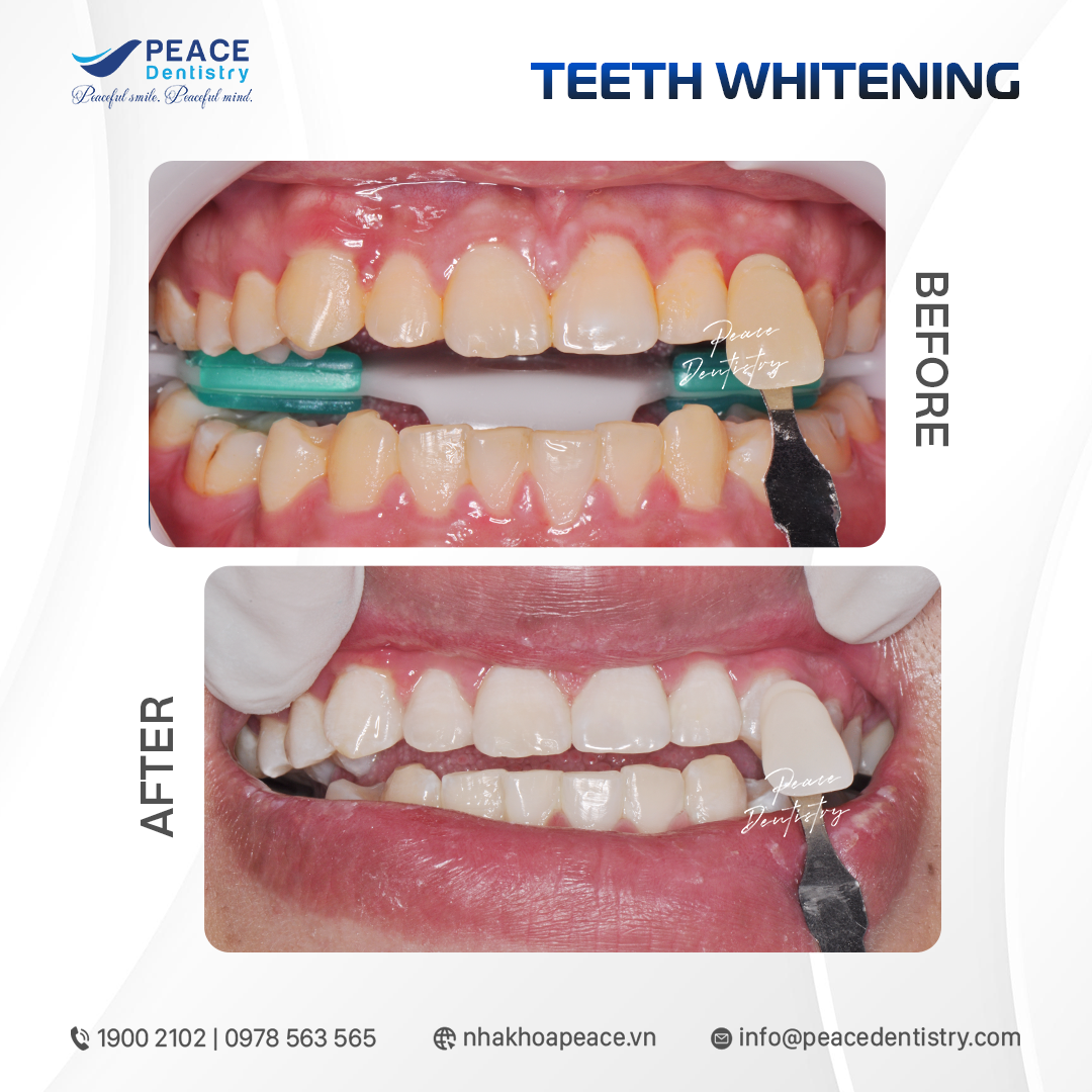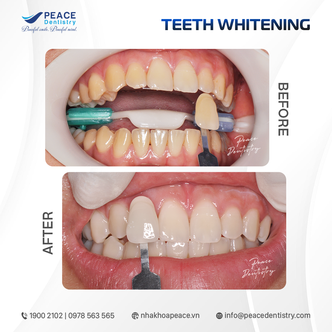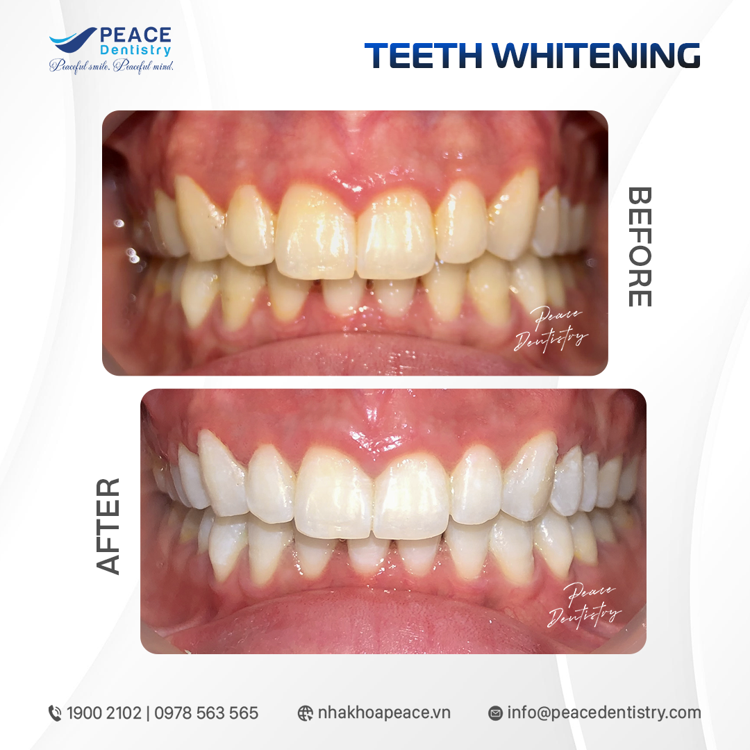 Với công nghệ tẩy trắng răng hiện đại, thuốc tẩy cao cấp và trực tiếp bác sĩ có kinh nghiệm thực hiện, tẩy trắng răng tại Peace Dentistry đảm bảo các kết quả: