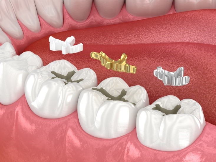 Kim loại ở đây có thể được làm từ vàng hoặc titan bởi chúng có khả năng tương thích tốt với khoang miệng.
